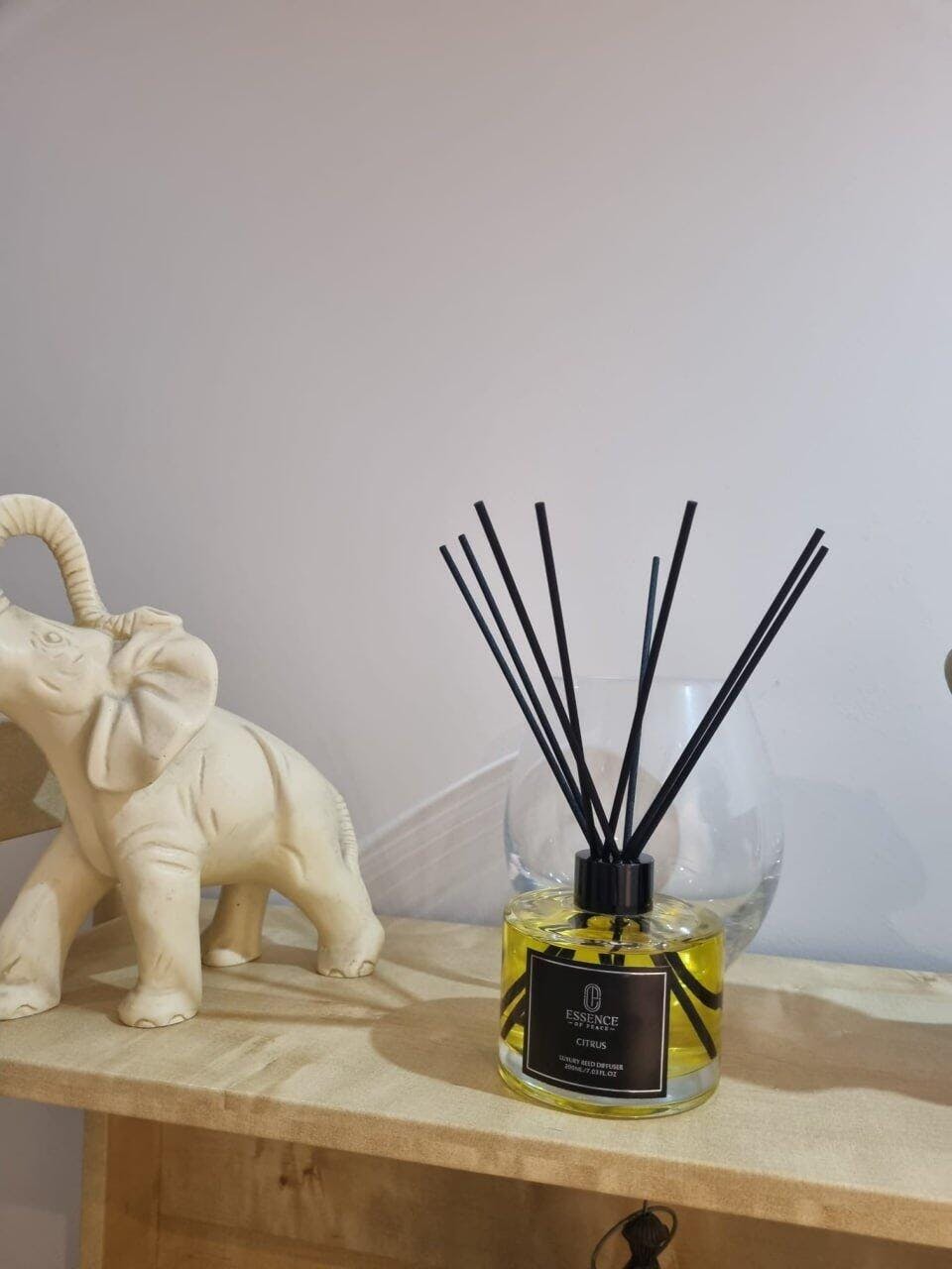 Infuse your space with the uplifting essence of fresh citrus. Our Citrus Reed Diffuser is a vibrant blend of zesty orange, juicy lemon, and a hint of tangy grapefruit, creating a clean and energizing atmosphere. Perfect for brightening up any room, this diffuser releases a continuous, subtle fragrance that lasts for weeks. The sleek design adds a touch of elegance to your decor, while the natural reeds gently disperse the scent—no flames, no fuss. Ideal for living rooms, bathrooms, or office spaces, it’s your go-to for a refreshing burst of sunshine indoors.